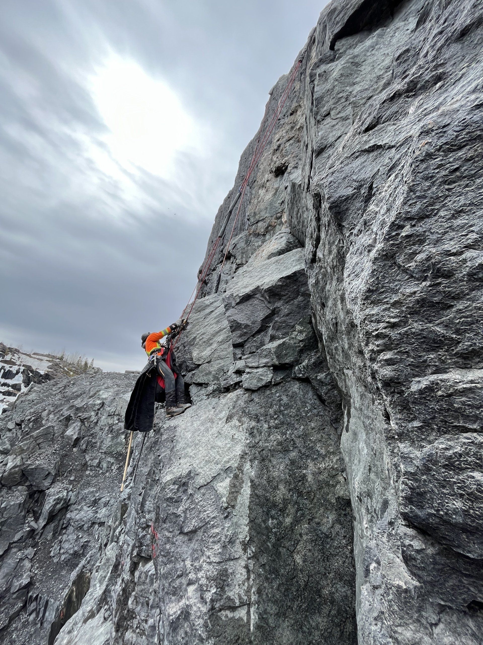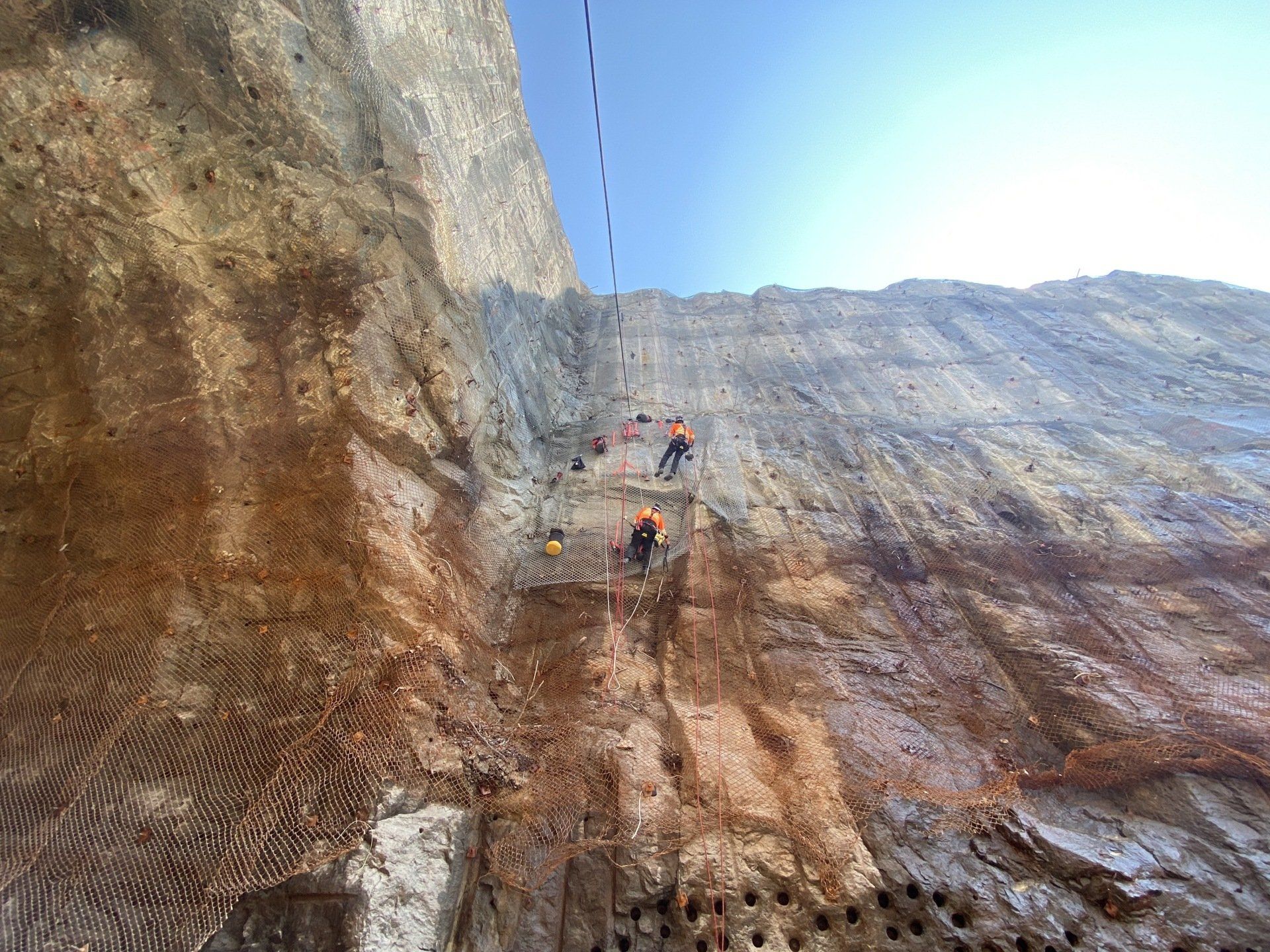 Nous sommes également en mesure de poser du treillis métallique afin d’assurer que les chutes de pierres ne se reproduisent pas dans le futur. Pour ce faire, nous installons les treillis boulonnés dans le roc. Nos techniques d’accès sur cordes font en sorte que nous pouvons accéder à vos sites avec facilité et flexibilité. Le travail sur cordes nous permet de nous rendre à n’importe quel emplacement et assurer la stabilisation des parois rocheuses avec exactitude et efficacité.